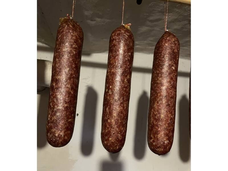 Die Mettwürste werden einzeln verkauft, bitte bei der Bestellung berücksichtigen.Die Mettwürste reifen bei uns im Keller 8-9 Wochen luftgetrocknet.